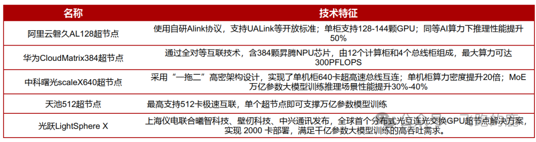 扩展集群算力的方式,一是升级芯片制程这一“核心硬件”,二是扩大集群规模这一“协作团队”。在制程突破遇阻的背景下,我国在大规模集群的系统建设与通信领域具备比较优势,建设超节点成为国产算力的重要发展方向,其如同算力世界的“聚合枢纽”,能高效整合分散计算资源。
