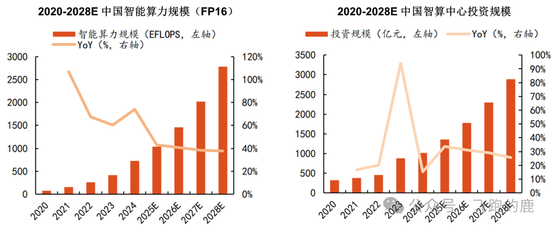 智算中心投资规模则像持续扩容的蓄水池,据科智咨询数据,2024年已突破千亿,2028年有望增至2886亿元,2023-2028年CAGR达26.8%。