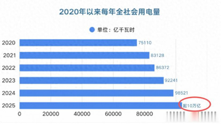 就在周末,电力行业有一个消息擒牛宝配资,那就是根据公开报道,2025年我国全社会用电量历史性突破10万亿千瓦时,达到10.4万亿千瓦时,同比增长5%。