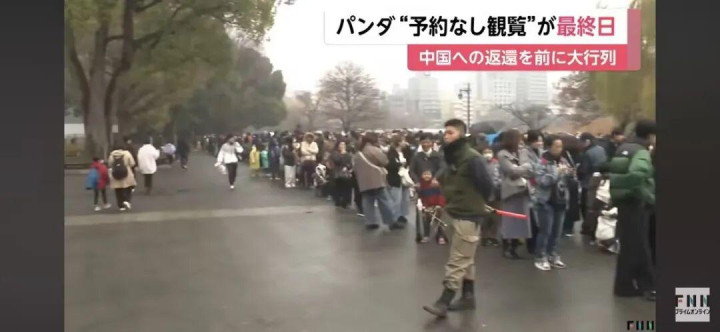 12月21日上野动物园前,大批日本民众排起长龙。